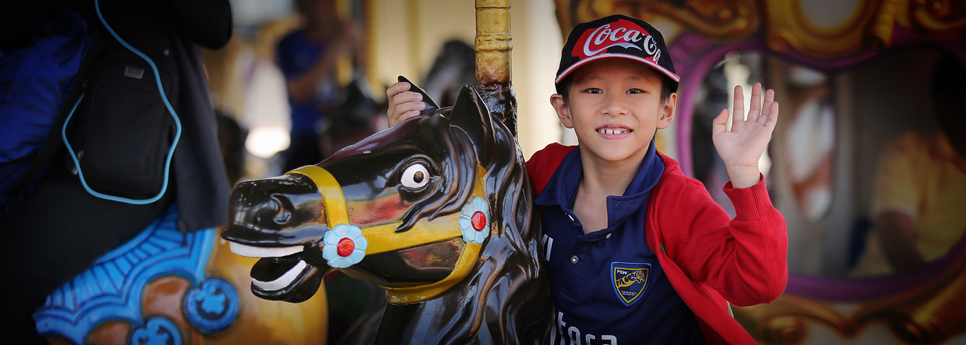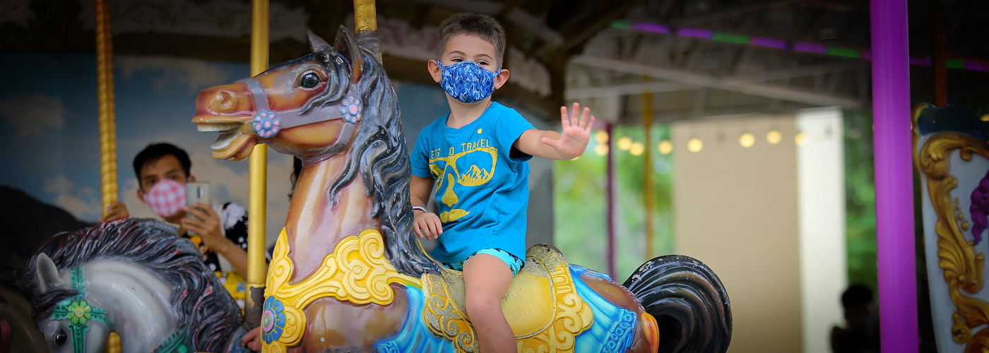 ม้าหมุนสองชั้นสุดคลาสสิคที่มีชื่อเสียงระดับโลก เป็นเครื่องเล่นที่เด็ก ๆ ชื่นชอบและมีความสุขกับโลกแห่งจินตนาการประหนึ่งเจ้าชายเจ้าหญิงบนหลังอาชา มีรถฟักทองในนิยายโบราณ ค่อยๆหมุนไปรอบๆ พร้อมเสียงดนตรีอันแสนไพเราะชวนสนุกสนานเพลิดเพลินไปในดินแดนแห่งจินตนาการ