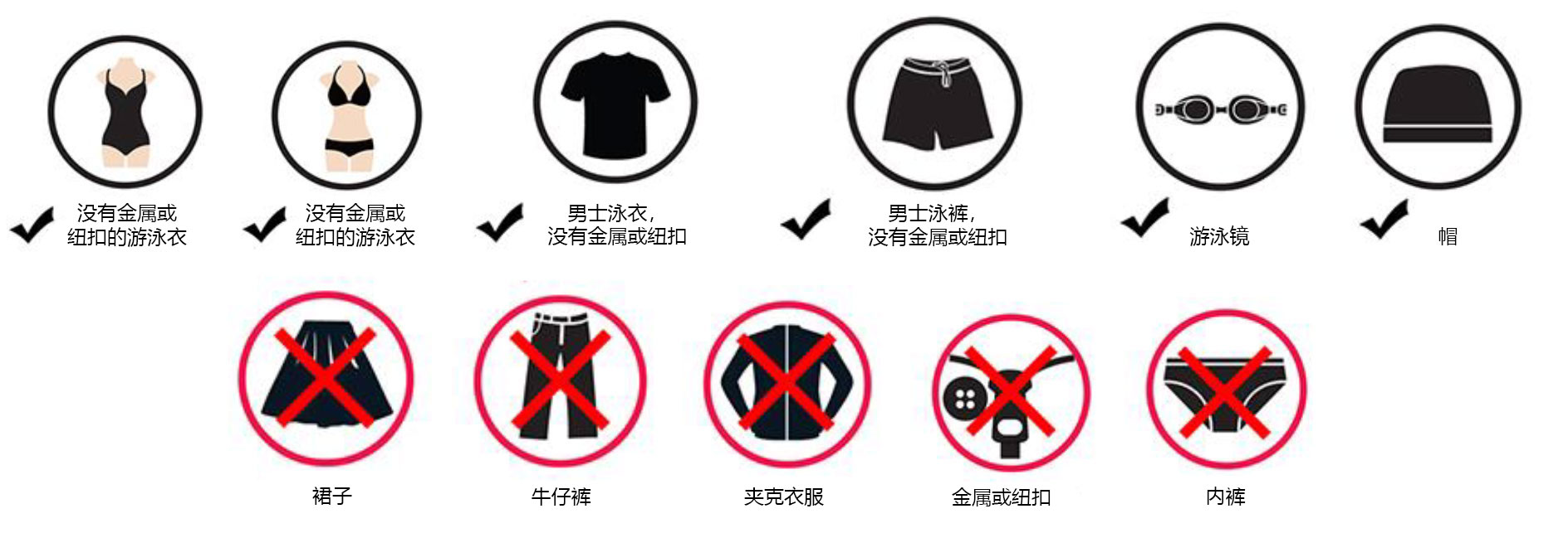 请穿游泳衣或符合游泳的服饰,详细信息可参照水上乐园各处立牌上的信息。