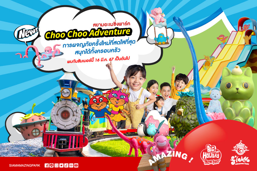 ปู๊น ปู๊นนนนน... กลับมาแล้ว Big Holiday 2024 เทศกาลปิดเทอมฤดูร้อนประจำปีสุดยิ่งใหญ่ของสยามอะเมซิ่งพาร์ค สวนน้ำและสวนสนุกมาตรฐานสากลของคนไทย ซัมเมอร์นี้ 16 มีนาคม – 12 พฤษภาคม 2567 เตรียมเปิดโลกแห่งการผจญภัยที่สดใสที่สุดและสนุกขึ้นกว่าเดิม พบกับเครื่องเล่นใหม่ “Choo Choo Adventure” ขบวนรถไฟแห่งความสุขที่จะพาทุกคนท่องไปในโลกแฟนตาซีทั้ง 5 ของมาสคอทสุดคิวท์แห่งสยามอะเมซิ่งพาร์ค ตื่นตาตื่นใจไปกับหุ่นกว่า 150 ตัว ออกแบบคอนเซ็ปท์โดยนักเขียนการ์ตูนชื่อดัง ในบรรยากาศสุดน่ารัก สีสันสดใสสะดุดตาโดนใจเด็ก ๆ ประกอบกับเสียงเพลงที่เป็นเอกลักษณ์